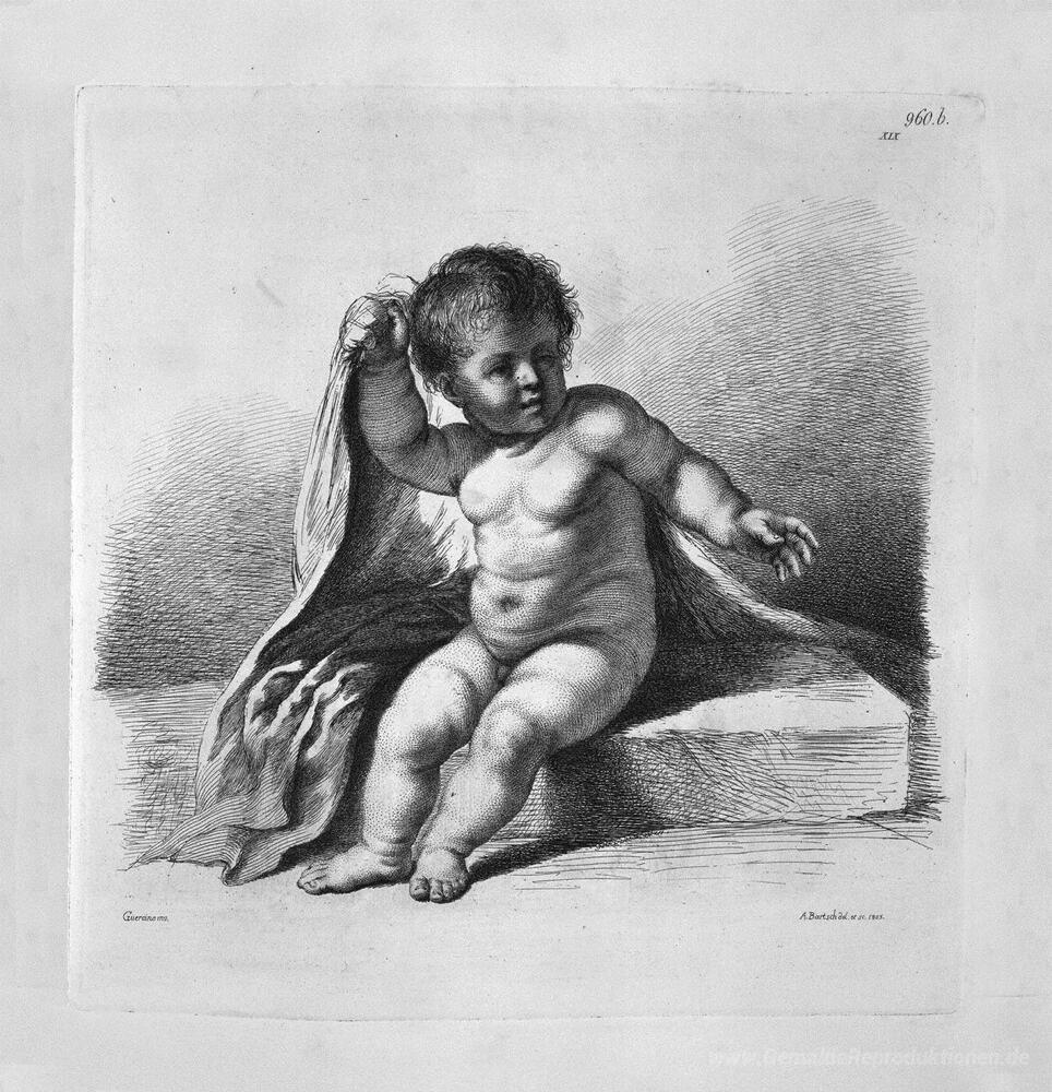 Wir bieten Ihnen eine handgefertigte Reproduktion auf Leinwand des berühmten Kunstwerks 'Cherub sitzen in der Tat der Überdeckung, von Guercino' von Giovanni Battista Piranesi, aus dem Reproduktionsmuseum.