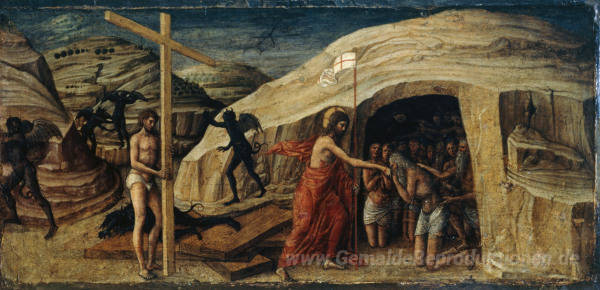 Wir bieten Ihnen eine handgefertigte Reproduktion auf Leinwand des berühmten Kunstwerks 'Christi Abstieg in die Vorhölle' von Jacopo Bellini, aus dem Reproduktionsmuseum.