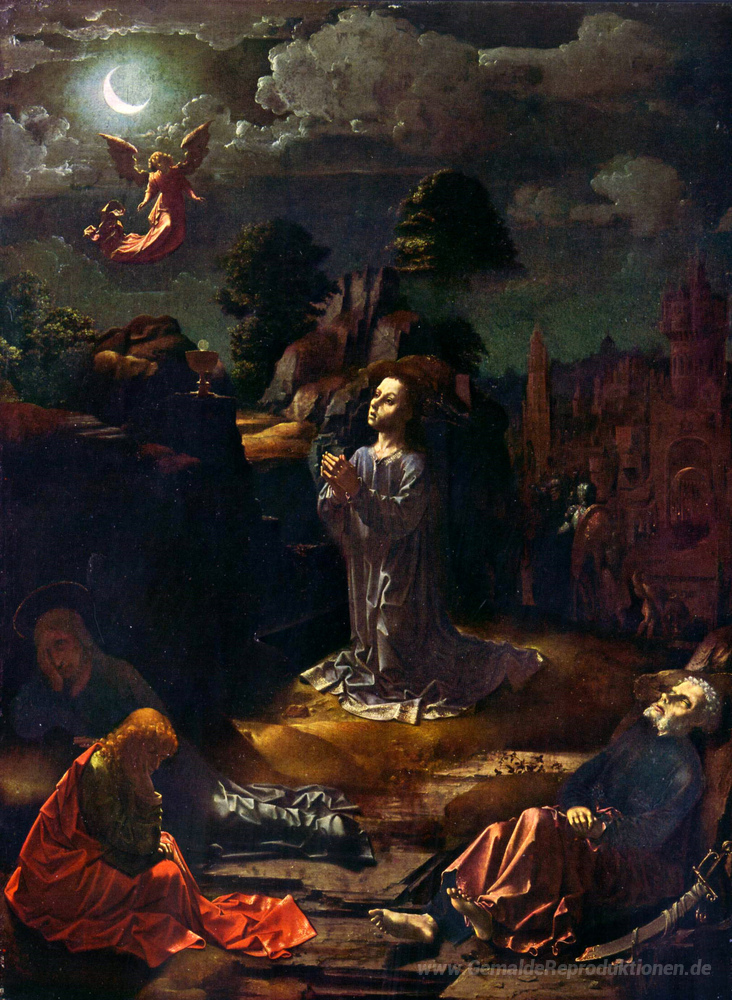 Wir bieten Ihnen eine handgefertigte Reproduktion auf Leinwand des berühmten Kunstwerks 'Christus am Ölberg' von Mabuse, aus dem Reproduktionsmuseum.