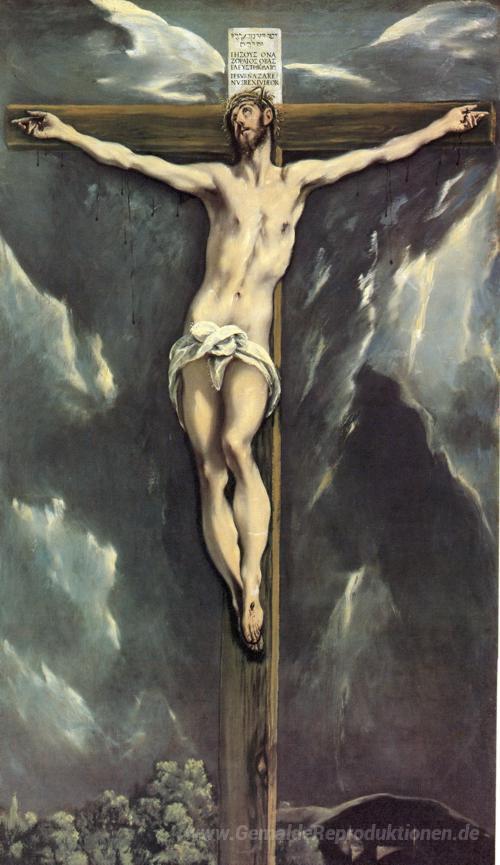 Wir bieten Ihnen eine handgefertigte Reproduktion auf Leinwand des berühmten Kunstwerks 'Christus am Kreuz' von El Greco, aus dem Reproduktionsmuseum.