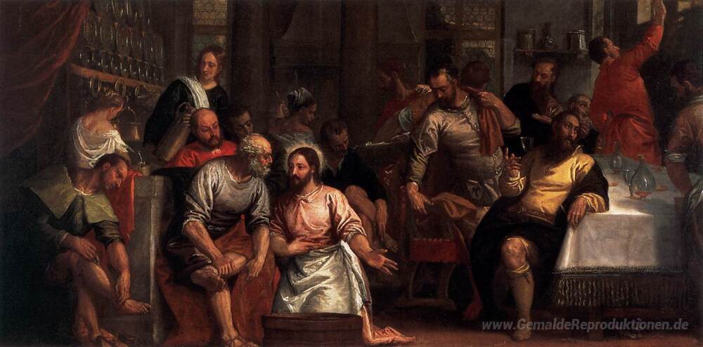 Willkommen in unserer exzellent kuratierten Kollektion von Ölgemälden, die die zeitlose Schönheit und Ausdruckskraft der Malerei verkörpern. Eines dieser Meisterwerke ist Christus die Fußwaschung der Jünger, geschaffen von dem renommierten Künstler Paolo Veronese. Veronese, bekannt für seine opulente Farbpalette und seine detailreiche Komposition, erweckt in diesem Gemälde eine ebenso tiefgründige wie ansprechende Szene, die den Betrachter zum Nachdenken anregt.