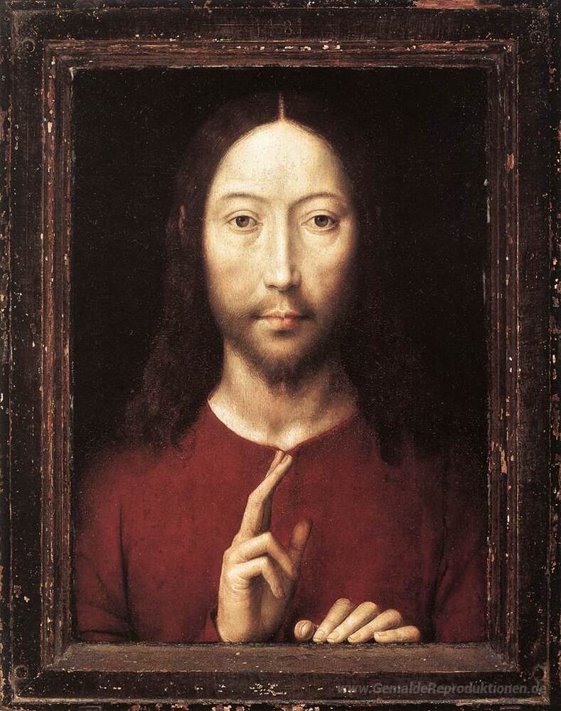 Wir bieten Ihnen eine handgefertigte Reproduktion auf Leinwand des berühmten Kunstwerks 'Christus gibt seinen Segen' von Hans Memling, aus dem Reproduktionsmuseum.