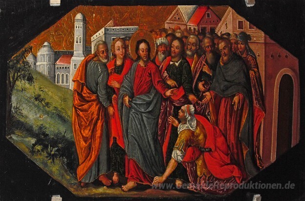 Wir bieten Ihnen eine handgefertigte Reproduktion auf Leinwand des berühmten Kunstwerks 'Christus heilt die Hemorrhaging Frau' von Ivan Rutkovych, aus dem Reproduktionsmuseum.