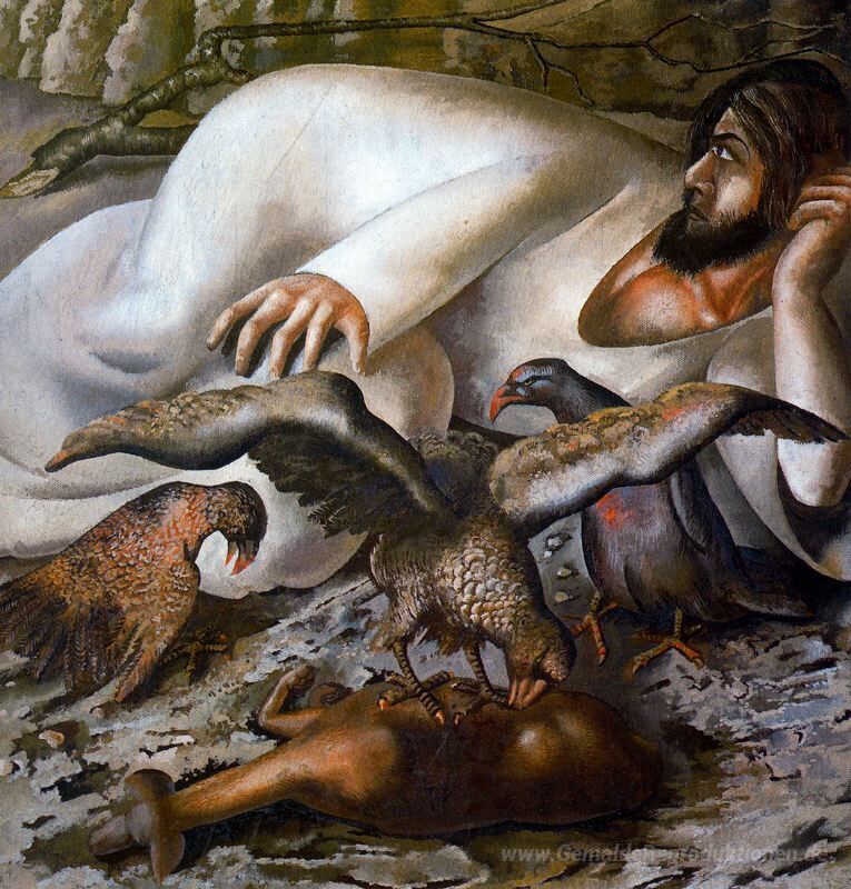 Wir bieten Ihnen eine handgefertigte Reproduktion auf Leinwand des berühmten Kunstwerks 'Christus in der Wüste - The Eagles' von Stanley Spencer, aus dem Reproduktionsmuseum.