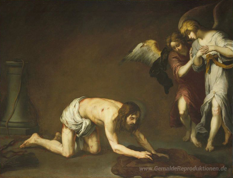 Wir bieten Ihnen eine handgefertigte Reproduktion auf Leinwand des berühmten Kunstwerks 'Christus nach der Geißelung' von Bartolome Esteban Murillo, aus dem Reproduktionsmuseum.