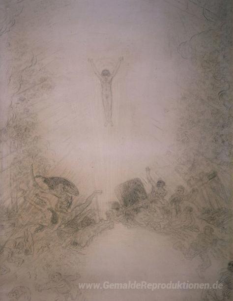 Wir bieten Ihnen eine handgefertigte Reproduktion auf Leinwand des berühmten Kunstwerks 'Christus Rising Up to Heaven' von James Ensor, aus dem Reproduktionsmuseum.