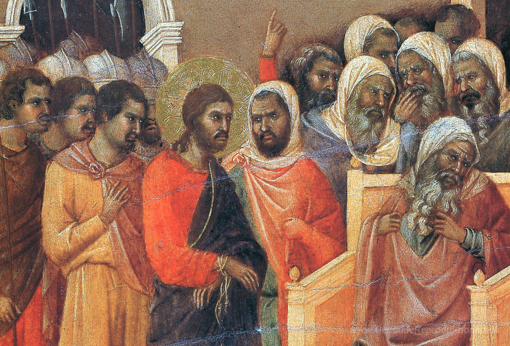 Wir bieten Ihnen eine handgefertigte Reproduktion auf Leinwand des berühmten Kunstwerks 'Christus vor Kaiphas (Fragment)' von Duccio, aus dem Reproduktionsmuseum.