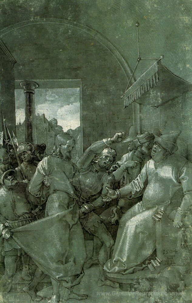 Wir bieten Ihnen eine handgefertigte Reproduktion auf Leinwand des berühmten Kunstwerks 'Christus vor Kaiphas' von Albrecht Durer, aus dem Reproduktionsmuseum.