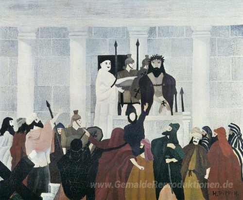 Willkommen in unserer exklusiven Kollektion handverlesener Ölgemälde, in der Meisterwerke wie Christus vor Pilatus von Horace Pippin erstrahlen. Pippin, ein bedeutender amerikanischer Künstler des 20. Jahrhunderts, war bekannt für seinen ausdrucksstarken Stil und seine Fähigkeit, emotionale Tiefe in seine Werke zu bringen. Sein Einsatz von lebendigen Farben und eindringlichen Kompositionen lädt den Betrachter dazu ein, in die dargestellte Szene einzutauchen.