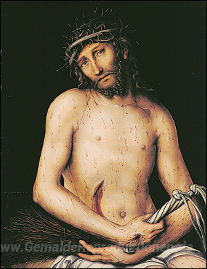 Wir bieten Ihnen eine handgefertigte Reproduktion auf Leinwand des berühmten Kunstwerks 'Chtist als Schmerzensmann' von Lucas Cranach the Elder, aus dem Reproduktionsmuseum.