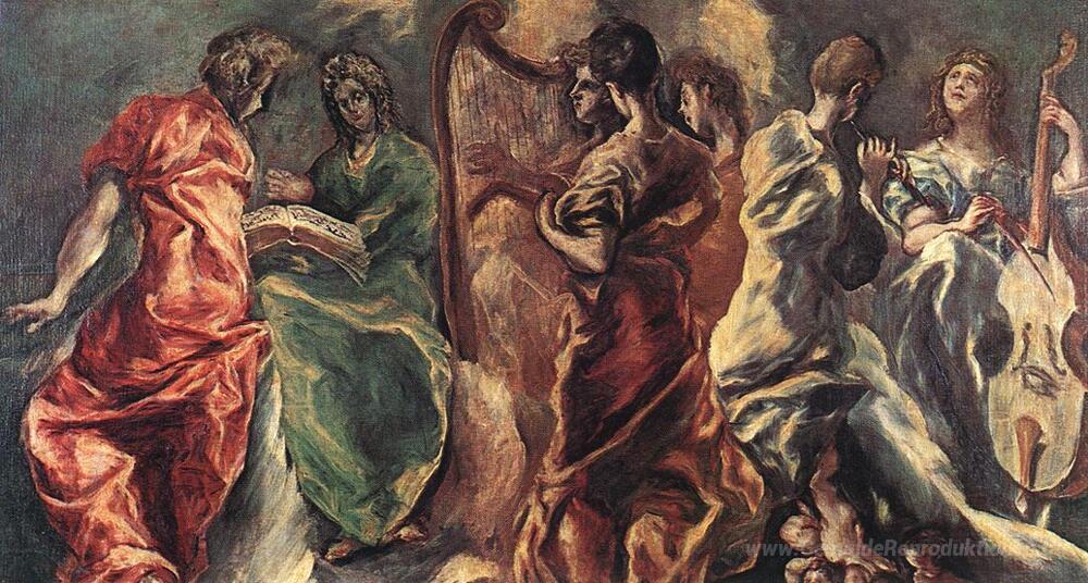 Wir bieten Ihnen eine handgefertigte Reproduktion auf Leinwand des berühmten Kunstwerks 'Concert of Angels' von El Greco, aus dem Reproduktionsmuseum.