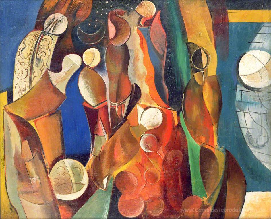 Wir bieten Ihnen eine handgefertigte Reproduktion auf Leinwand des berühmten Kunstwerks 'Creation Myth' von Wyndham Lewis, aus dem Reproduktionsmuseum.