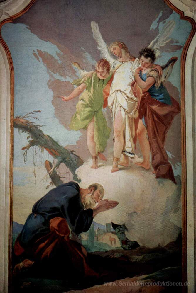Wir bieten Ihnen eine handgefertigte Reproduktion auf Leinwand des berühmten Kunstwerks 'Das Aussehen der Engel an Abraham' von Giovanni Battista Tiepolo, aus dem Reproduktionsmuseum.