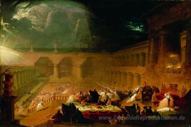 Wir bieten Ihnen eine handgefertigte Reproduktion auf Leinwand des berühmten Kunstwerks 'Das Bankett von Belshazzar' von John Martin, aus dem Reproduktionsmuseum.