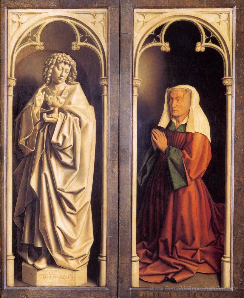 Wir bieten Ihnen eine handgefertigte Reproduktion auf Leinwand des berühmten Kunstwerks 'Das Gent-Altar (Detail)' von Jan van Eyck, aus dem Reproduktionsmuseum.