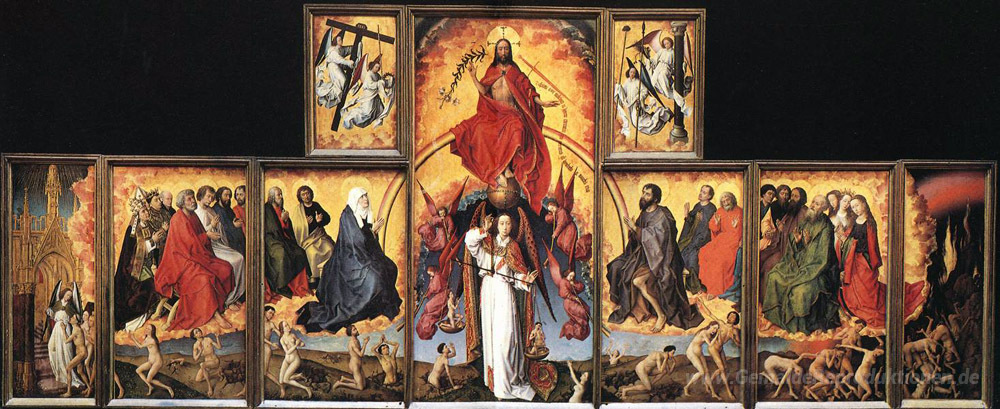 Wir bieten Ihnen eine handgefertigte Reproduktion auf Leinwand des berühmten Kunstwerks 'Das Jüngste Gericht' von Rogier van der Weyden, aus dem Reproduktionsmuseum.