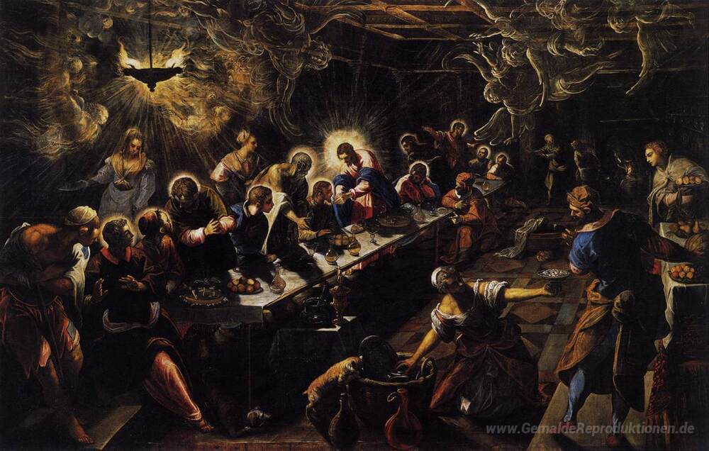 Ölgemälde sind nicht nur Kunstwerke, sondern auch Ausdruck künstlerischer Seelen, die Geschichten erzählen und Emotionen wecken. Eines unserer Meisterwerke ist Das letzte Abendmahl, geschaffen von dem renommierten Künstler Tintoretto. Dieser italienische Maler des 16. Jahrhunderts ist bekannt für seinen dynamischen Stil und die harmonische Verbindung von Licht und Schatten, die seinen Arbeiten eine unverwechselbare Tiefe verleiht. Seine Fähigkeit, Bewegung und dramatische Momente festzuhalten, wird in diesem ikonischen Werk besonders deutlich.