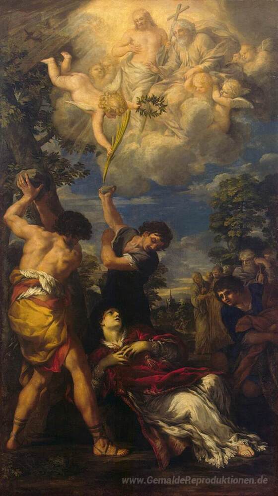 Wir bieten Ihnen eine handgefertigte Reproduktion auf Leinwand des berühmten Kunstwerks 'Das Martyrium des Heiligen Stephen' von Pietro da Cortona, aus dem Reproduktionsmuseum.