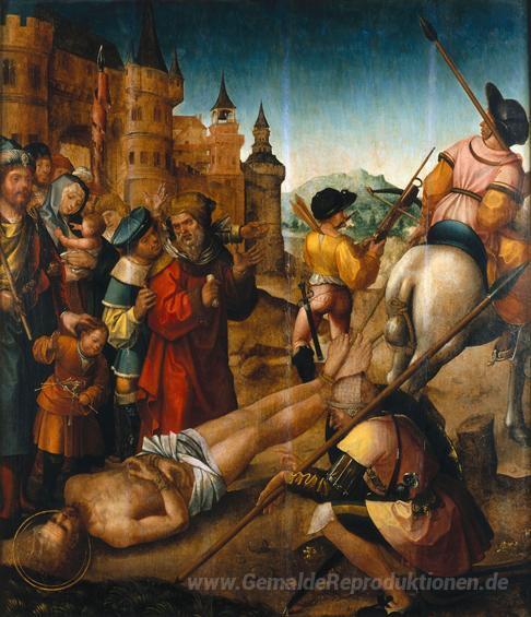 Wir bieten Ihnen eine handgefertigte Reproduktion auf Leinwand des berühmten Kunstwerks 'Das Martyrium des Santo Hipólito' von Cristovao de Figueiredo, aus dem Reproduktionsmuseum.