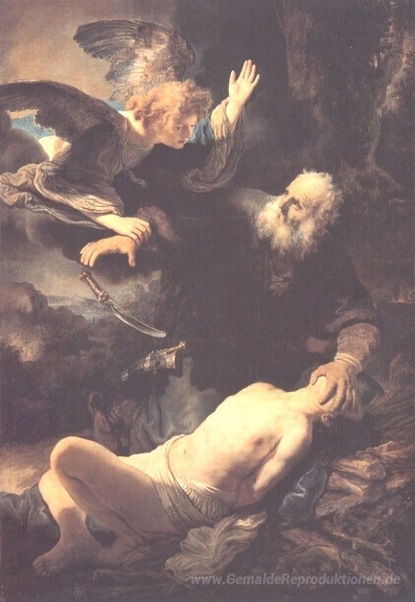 Wir bieten Ihnen eine handgefertigte Reproduktion auf Leinwand des berühmten Kunstwerks 'Das Opfer von Abraham' von Rembrandt, aus dem Reproduktionsmuseum.