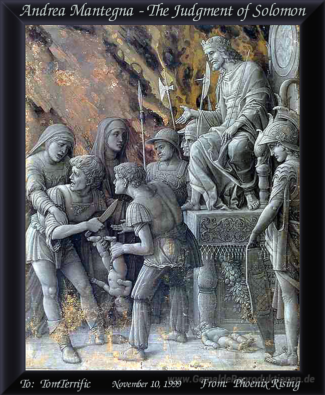 Wir bieten Ihnen eine handgefertigte Reproduktion auf Leinwand des berühmten Kunstwerks 'Das Urteil des Salomo' von Andrea Mantegna, aus dem Reproduktionsmuseum.