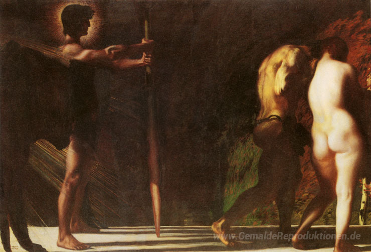 Wir bieten Ihnen eine handgefertigte Reproduktion auf Leinwand des berühmten Kunstwerks 'Das verlorene Paradies' von Franz Stuck, aus dem Reproduktionsmuseum.