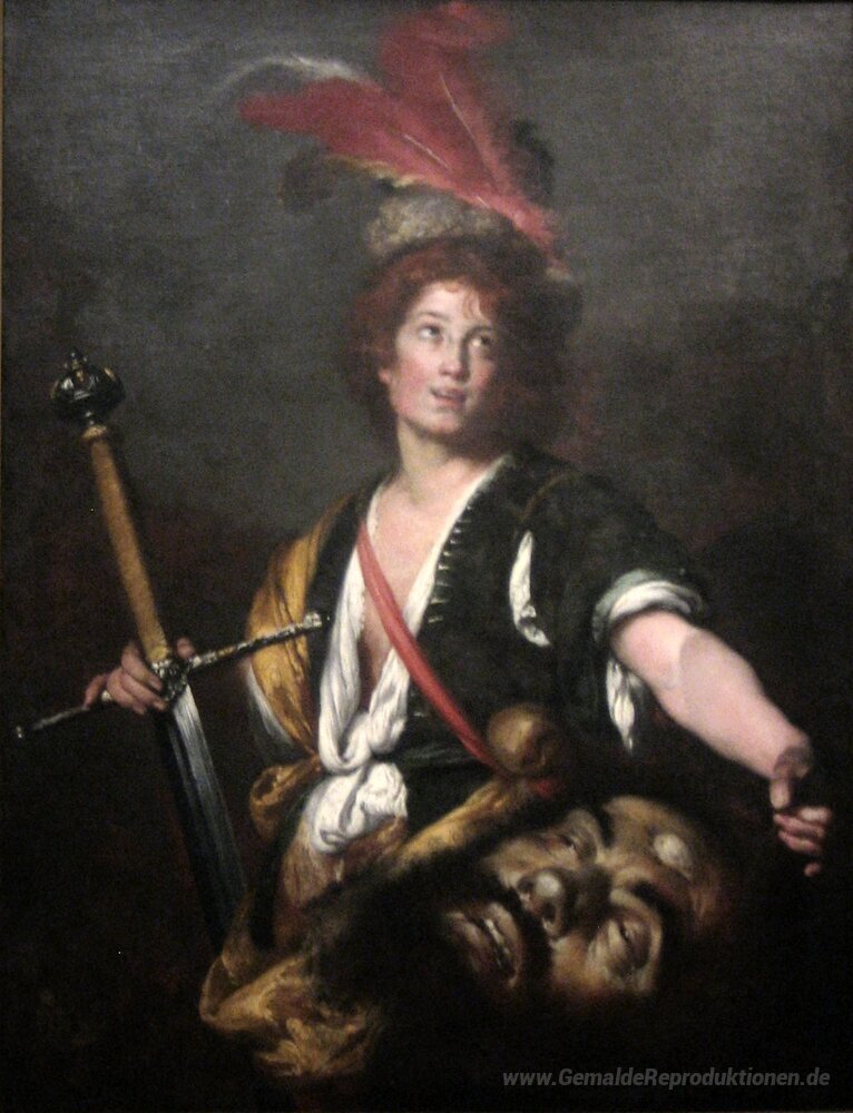 Wir bieten Ihnen eine handgefertigte Reproduktion auf Leinwand des berühmten Kunstwerks 'David mit dem Haupt des Goliath' von Bernardo Strozzi, aus dem Reproduktionsmuseum.