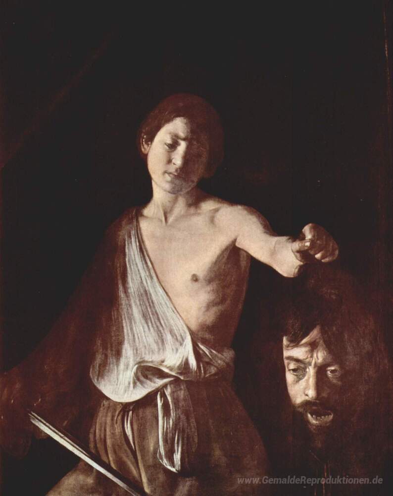 Wir bieten Ihnen eine handgefertigte Reproduktion auf Leinwand des berühmten Kunstwerks 'David mit dem Haupt des Goliath' von Caravaggio, aus dem Reproduktionsmuseum.