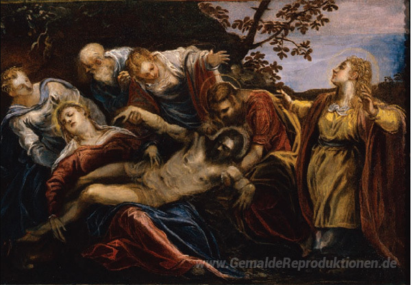 Wir bieten Ihnen eine handgefertigte Reproduktion auf Leinwand des berühmten Kunstwerks 'Deploration Christi' von Tintoretto, aus dem Reproduktionsmuseum.