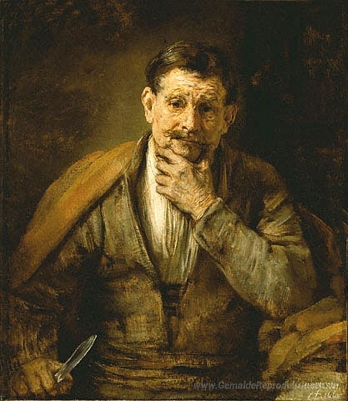 Wir bieten Ihnen eine handgefertigte Reproduktion auf Leinwand des berühmten Kunstwerks 'Der Apostel Bartholomäus' von Rembrandt, aus dem Reproduktionsmuseum.