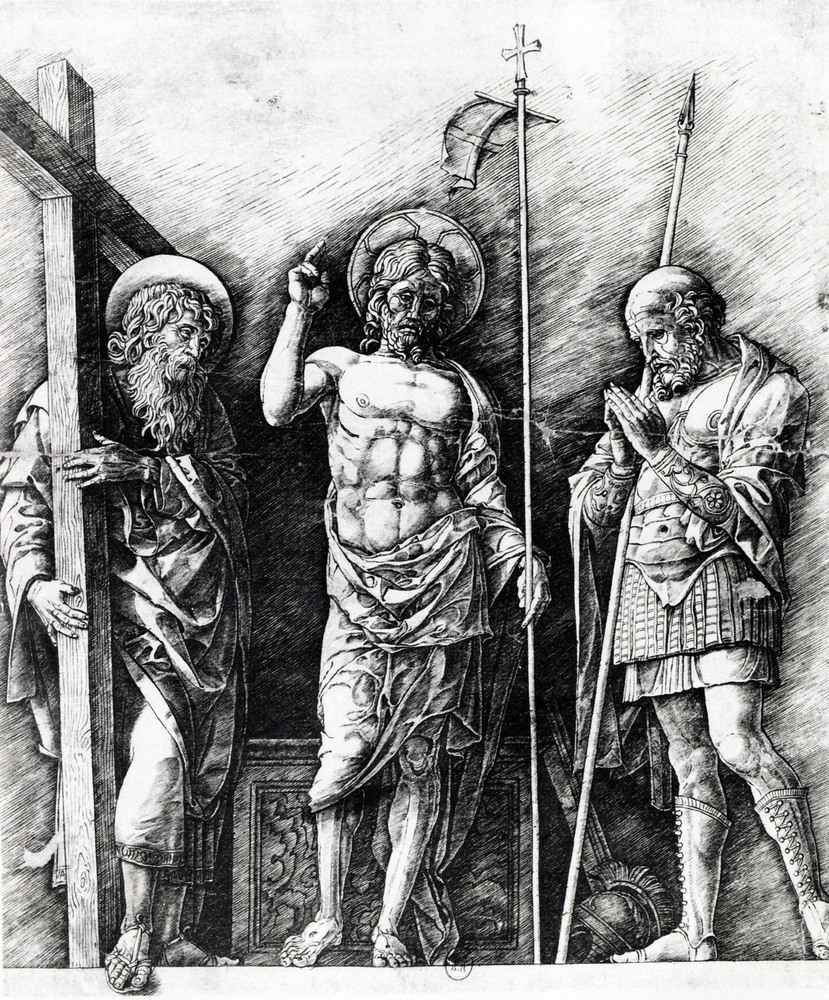 Wir bieten Ihnen eine handgefertigte Reproduktion auf Leinwand des berühmten Kunstwerks 'Der auferstandene Christus zwischen St. Andreas und Longinus' von Andrea Mantegna, aus dem Reproduktionsmuseum.