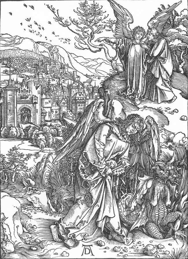 Wir bieten Ihnen eine handgefertigte Reproduktion auf Leinwand des berühmten Kunstwerks 'Der Engel mit dem Schlüssel zum Abgrund' von Albrecht Durer, aus dem Reproduktionsmuseum.