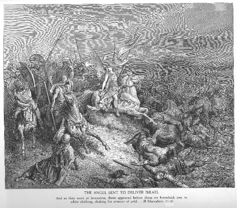 Wir bieten Ihnen eine handgefertigte Reproduktion auf Leinwand des berühmten Kunstwerks 'Der Engel wird gesendet, um Israel zu befreien' von Gustave Dore, aus dem Reproduktionsmuseum.