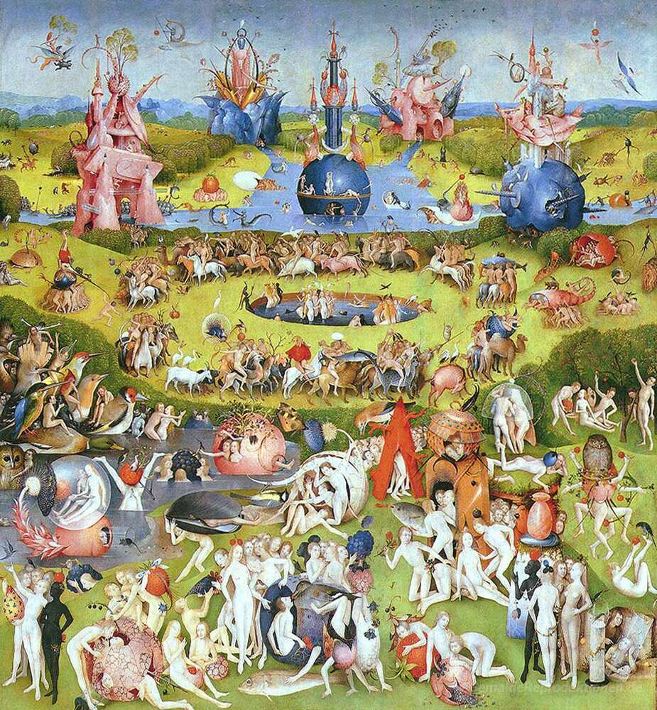 Wir bieten Ihnen eine handgefertigte Reproduktion auf Leinwand des berühmten Kunstwerks 'Der Garten der Lüste (Detail)' von Hieronymus Bosch, aus dem Reproduktionsmuseum.