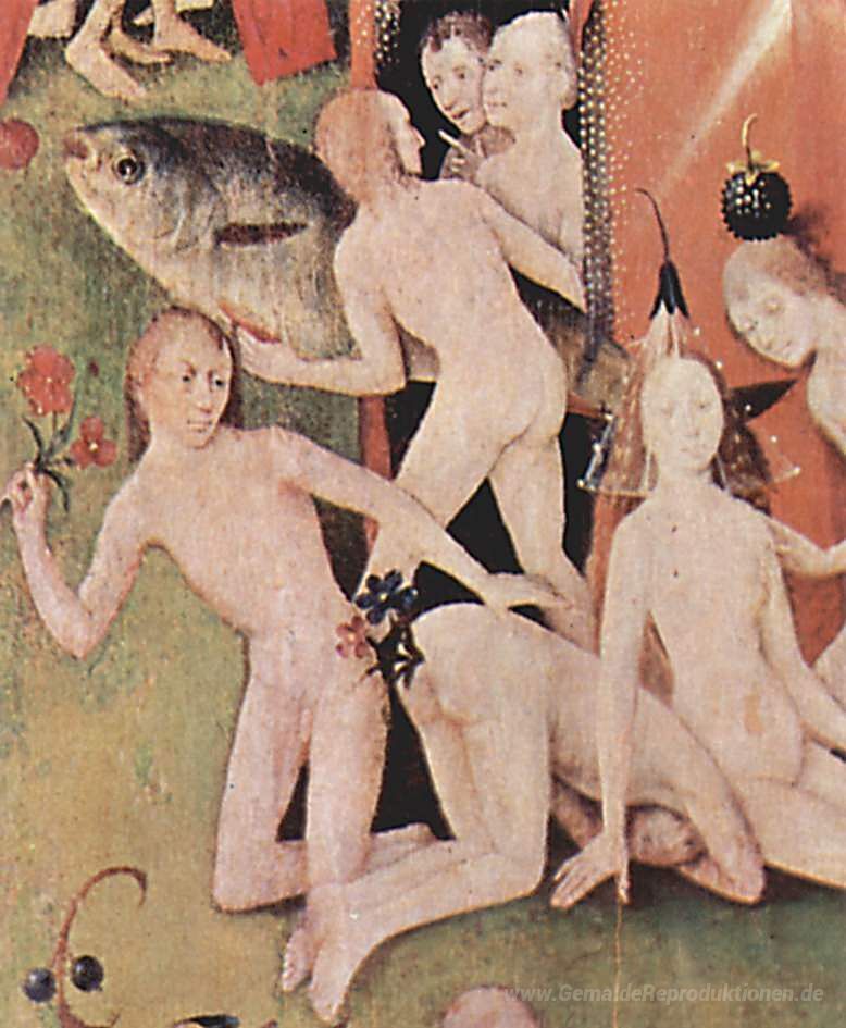 Wir bieten Ihnen eine handgefertigte Reproduktion auf Leinwand des berühmten Kunstwerks 'Der Garten der Lüste (Detail)' von Hieronymus Bosch, aus dem Reproduktionsmuseum.