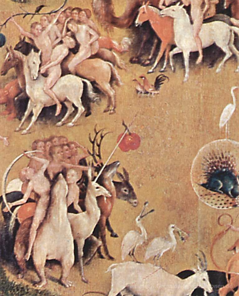 Wir bieten Ihnen eine handgefertigte Reproduktion auf Leinwand des berühmten Kunstwerks 'Der Garten der Lüste (Detail)' von Hieronymus Bosch, aus dem Reproduktionsmuseum.