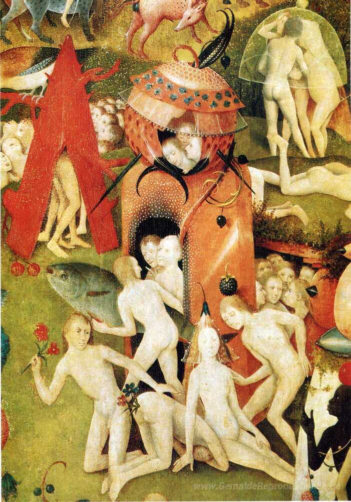 Wir bieten Ihnen eine handgefertigte Reproduktion auf Leinwand des berühmten Kunstwerks 'Der Garten der Lüste (Detail)' von Hieronymus Bosch, aus dem Reproduktionsmuseum.
