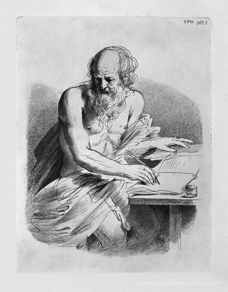 Wir bieten Ihnen eine handgefertigte Reproduktion auf Leinwand des berühmten Kunstwerks 'Der heilige Hieronymus in der Akt des Schreibens, von Guercino' von Giovanni Battista Piranesi, aus dem Reproduktionsmuseum.