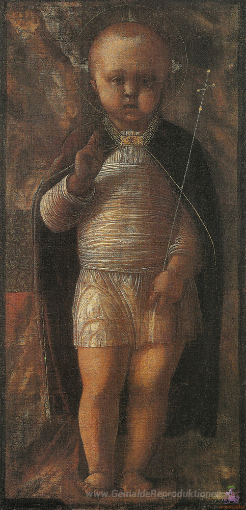 Wir bieten Ihnen eine handgefertigte Reproduktion auf Leinwand des berühmten Kunstwerks 'Der Infant Redeemer' von Andrea Mantegna, aus dem Reproduktionsmuseum.