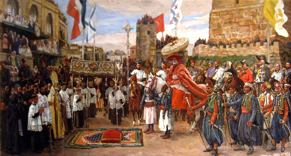 Wir bieten Ihnen eine handgefertigte Reproduktion auf Leinwand des berühmten Kunstwerks 'Der lateinische Patriarch von Jerusalem' von James Tissot, aus dem Reproduktionsmuseum.