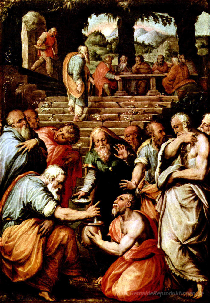Wir bieten Ihnen eine handgefertigte Reproduktion auf Leinwand des berühmten Kunstwerks 'Der Prophet Elisa Reinigung Naaman' von Giorgio Vasari, aus dem Reproduktionsmuseum.