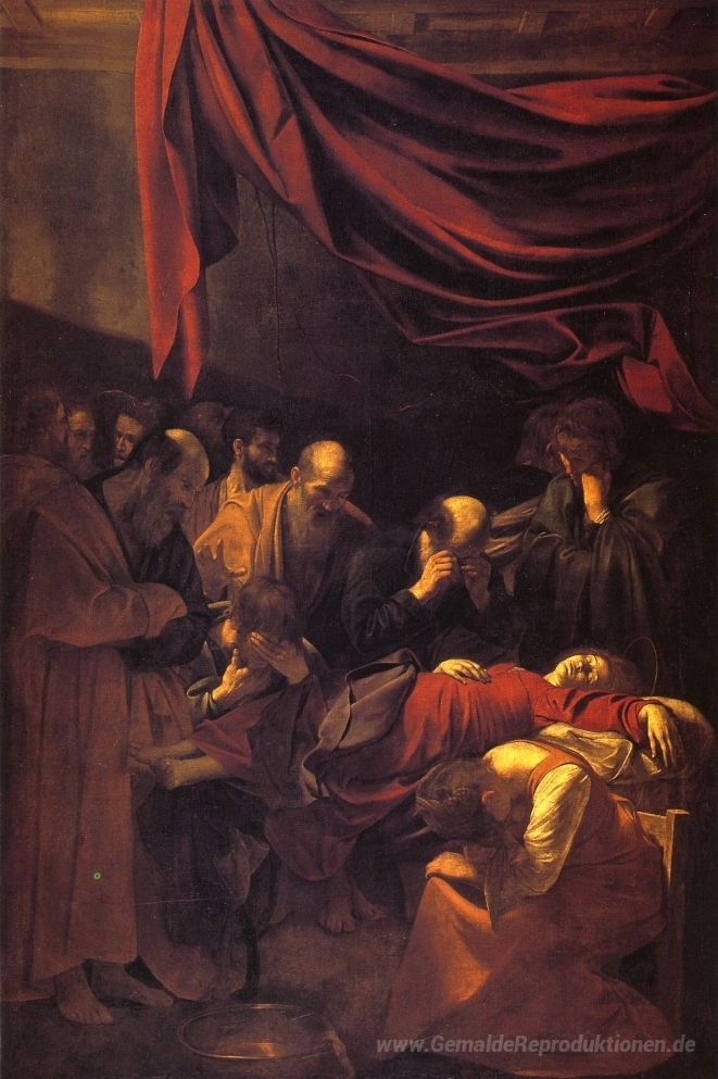 Wir bieten Ihnen eine handgefertigte Reproduktion auf Leinwand des berühmten Kunstwerks 'Der Tod der Jungfrau' von Caravaggio, aus dem Reproduktionsmuseum.