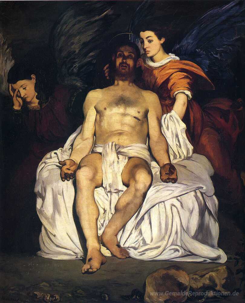 Wir bieten Ihnen eine handgefertigte Reproduktion auf Leinwand des berühmten Kunstwerks 'Der tote Christus mit Engeln' von Edouard Manet, aus dem Reproduktionsmuseum.