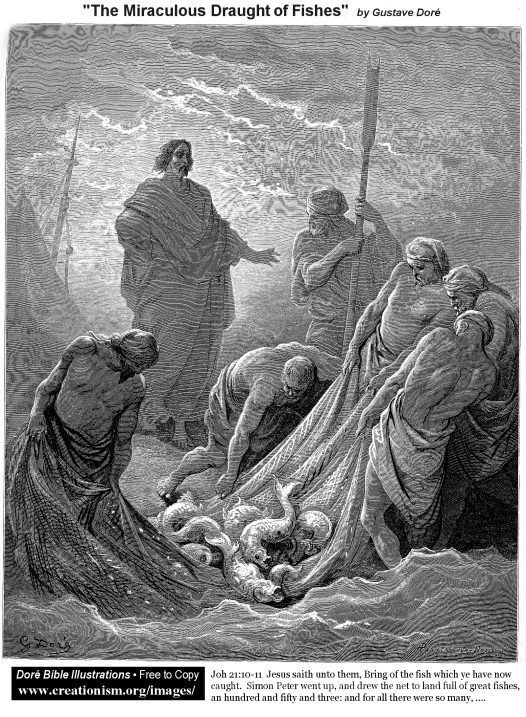 Wir bieten Ihnen eine handgefertigte Reproduktion auf Leinwand des berühmten Kunstwerks 'Der wunderbare Fischzug' von Gustave Dore, aus dem Reproduktionsmuseum.
