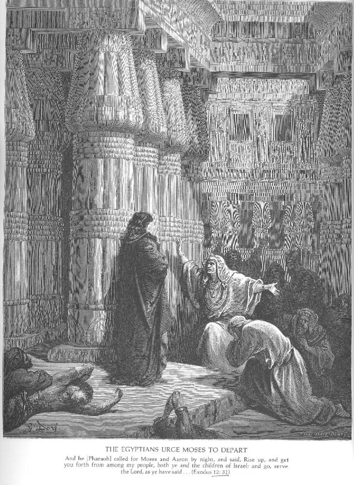 Wir bieten Ihnen eine handgefertigte Reproduktion auf Leinwand des berühmten Kunstwerks 'Die Ägypter Fragen Sie Moses zur Abreise' von Gustave Dore, aus dem Reproduktionsmuseum.