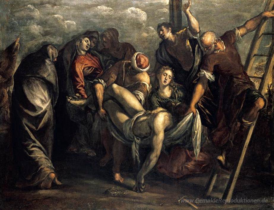 Wir bieten Ihnen eine handgefertigte Reproduktion auf Leinwand des berühmten Kunstwerks 'Die Absetzung' von Tintoretto, aus dem Reproduktionsmuseum.