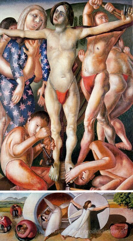 Wir bieten Ihnen eine handgefertigte Reproduktion auf Leinwand des berühmten Kunstwerks 'Die Absetzung und das Wegrollen des Steins' von Stanley Spencer, aus dem Reproduktionsmuseum.