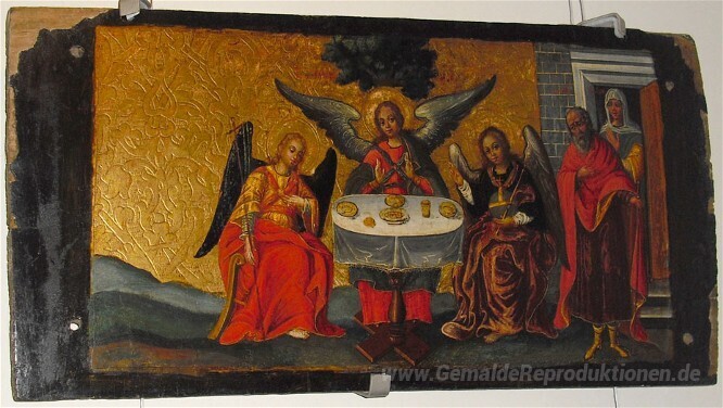 Wir bieten Ihnen eine handgefertigte Reproduktion auf Leinwand des berühmten Kunstwerks 'Die Alttestamentliche Dreifaltigkeit' von Ivan Rutkovych, aus dem Reproduktionsmuseum.