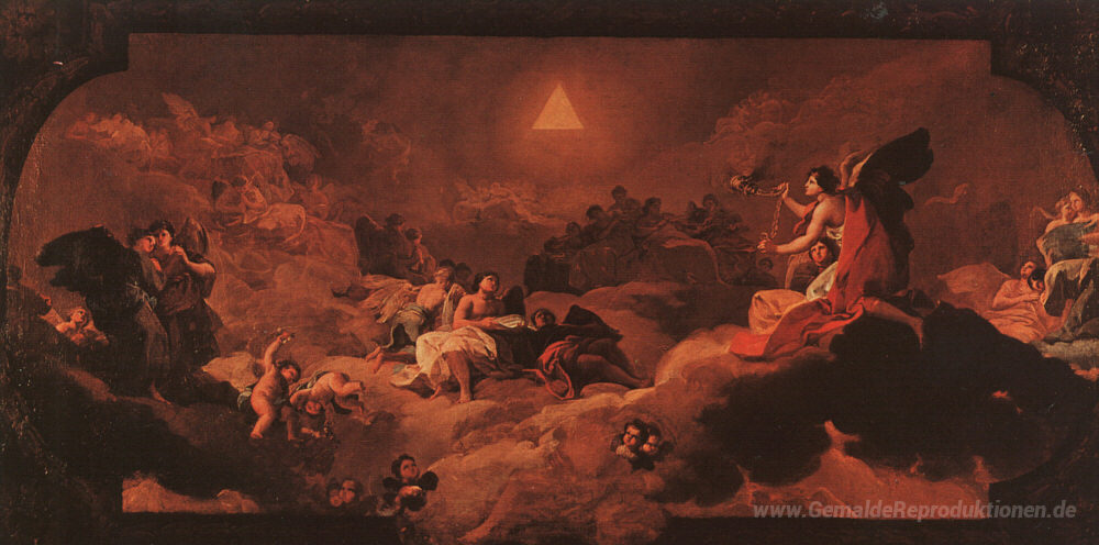 Wir bieten Ihnen eine handgefertigte Reproduktion auf Leinwand des berühmten Kunstwerks 'Die Anbetung der Name des Herrn' von Francisco Goya, aus dem Reproduktionsmuseum.