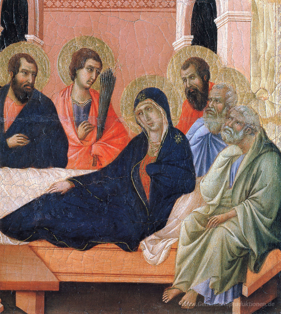 Wir bieten Ihnen eine handgefertigte Reproduktion auf Leinwand des berühmten Kunstwerks 'Die Apostel von Maria (Fragment)' von Duccio, aus dem Reproduktionsmuseum.